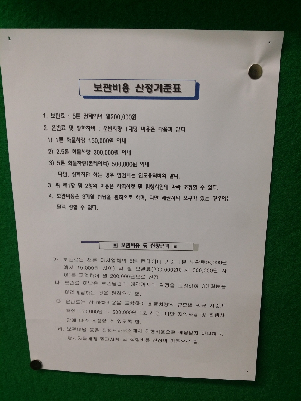 집행관 본집행시 물류 "보관비용 산정기준표" 페이지 정보 작성자 (220.♡.167.96) 작성일18-03-29 18:55 조회3,896회 댓글0건 관련링크 이전글 다음글 목록 본문 집행관은 인도집행을 하면서 집행목적물(건물) 이외의 동산(채무자 소유의 집기류)를 외부로 반출하여 물류업체에 보관을 하도록 하거나 집행채권자의 요청에 의하여 보관장소를 정하여 보관하도록 합니다.외부 물류업체에 보관시 집행관이 적용하는 "보관비용 산정기준표" 입니다. 댓글목록 등록된 댓글이 없습니다. 이전글 다음글 목록