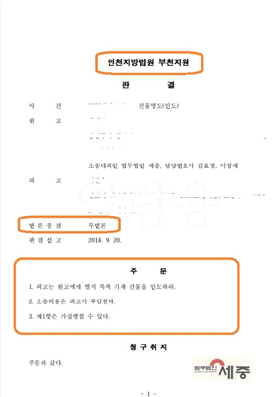 의정부 변호사 명도소송 건물철거 및 토지인도 소송 법무법인 세중입니다.^^